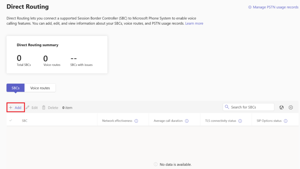 Within the Teams Admin portal, select “Voice” on the left and select “Direct Routing”